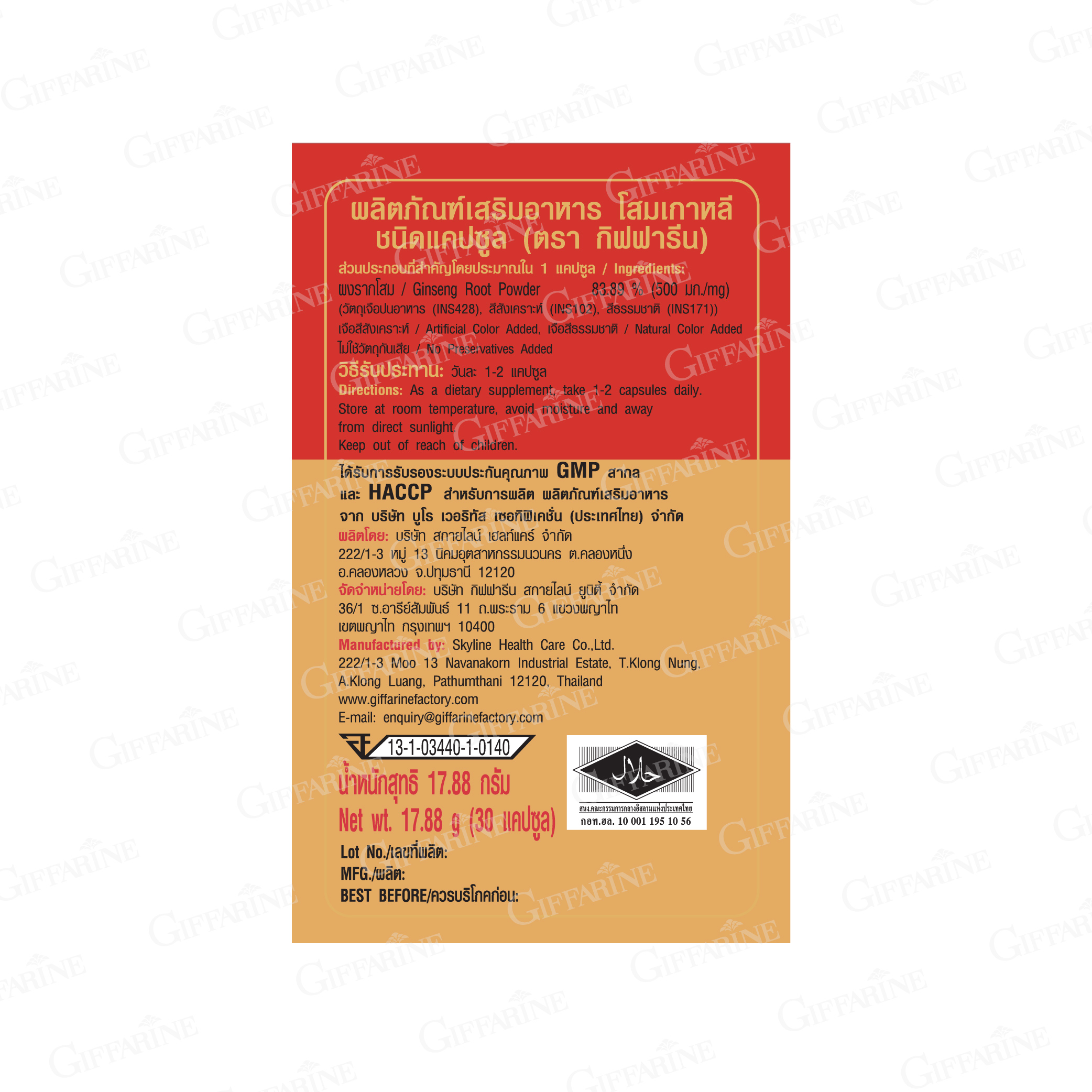 ผลิตภัณฑ์เสริมอาหาร โสมเกาหลี ชนิดแคปซูล ตรา กิฟฟารีน