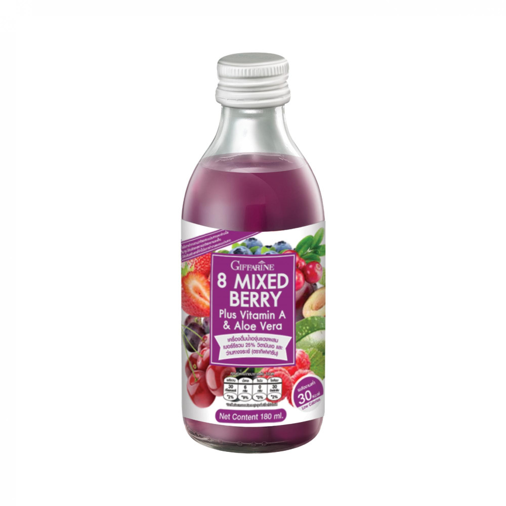 เครื่องดื่มน้ำองุ่นแดงผสมเบอร์รีรวม 25% วิตามินเอและว่านหางจระเข้ (ตรา กิฟฟารีน) เครื่องดื่มน้ำองุ่นแดงผสมเบอร์รี่รวม 20% วิตามินเอ และว่านหางจระเข้ สุดยอดเบอร์รี่พันธุ์ดีรวม 8 ชนิด มีแมกนีเซียม มีวิตามินบี 6 สูง ผสมว่านหางจระเข้แท้ 100% เกรดพรีเมี่ยม พลังงานต่ำ 1 ขวดให้พลังงานเพียง 30 Kcal ส่วนประกอบที่สำคัญ : น้ำองุ่นแดงเข้มข้น เนื้อว่านหางจระเข้ เบอร์รี่รวม 8 ชนิด (บลูเบอร์รี่ พรุน เชอรี่ ราสพ์เบอรี่ แครนเบอร์รี่ สตรอเบอร์รี่ บิลเบอร์รี่ อาซาอิเบอร์รี่) แมกนีเซียม วิตามินเอ และ วิตามินบี 6